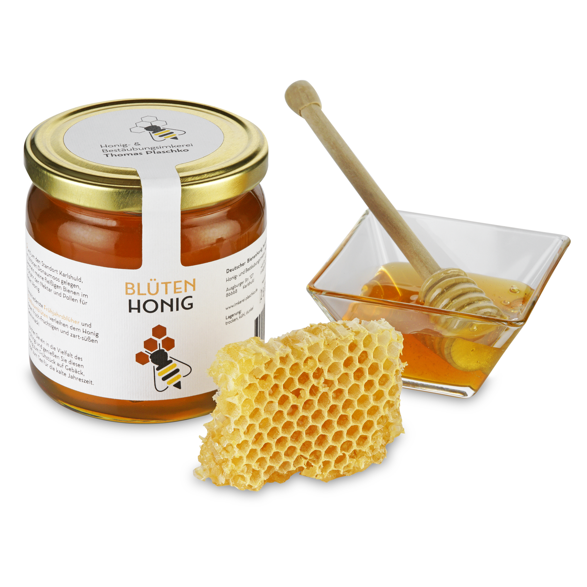 - Nach der Honigernte werden meine Bienenvölker mit hochwertigem Zuckerwasser auf Rübenzuckerbasis gefüttert. Dabei wird auf regionale Wertschöpfung geachtet. Das Zuckerwasser ist in der Zusammensetzung dem Honig sehr ähnlich.